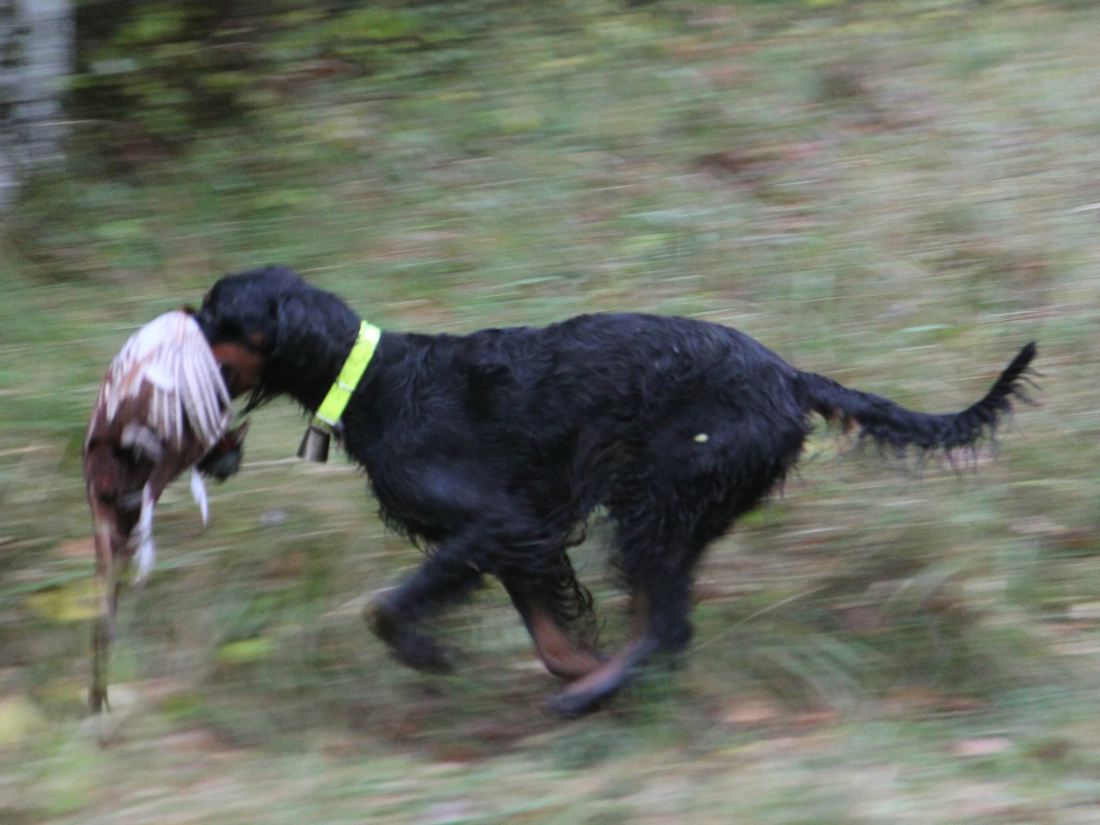 Avec Angun ça ce passe mal. Tout d'abord à l'arrêt, elle est tellement enfoncé dans le buisson qu'il est impossible de faire une photo, puis l'oiseau s'envole et il est loupé par le chasseur le plus proche. Ensuite la petite est complètement folle et cherche son oiseau partout ce qui fait qu'elle ne veut plus revenir vers nous. La chipie !